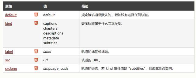 其中的<track>标签就是导入字幕的标签,是一个html5中出现的新标签。属性解释如下: