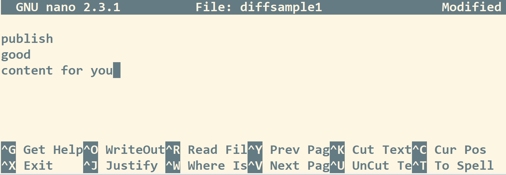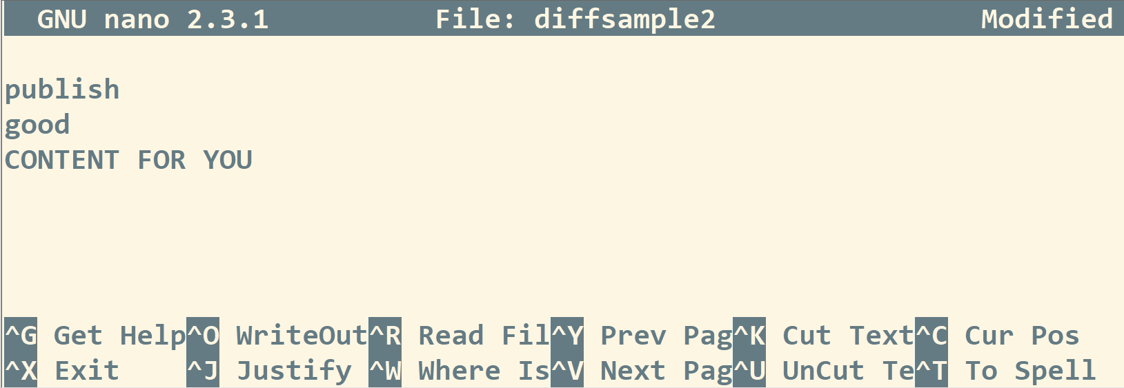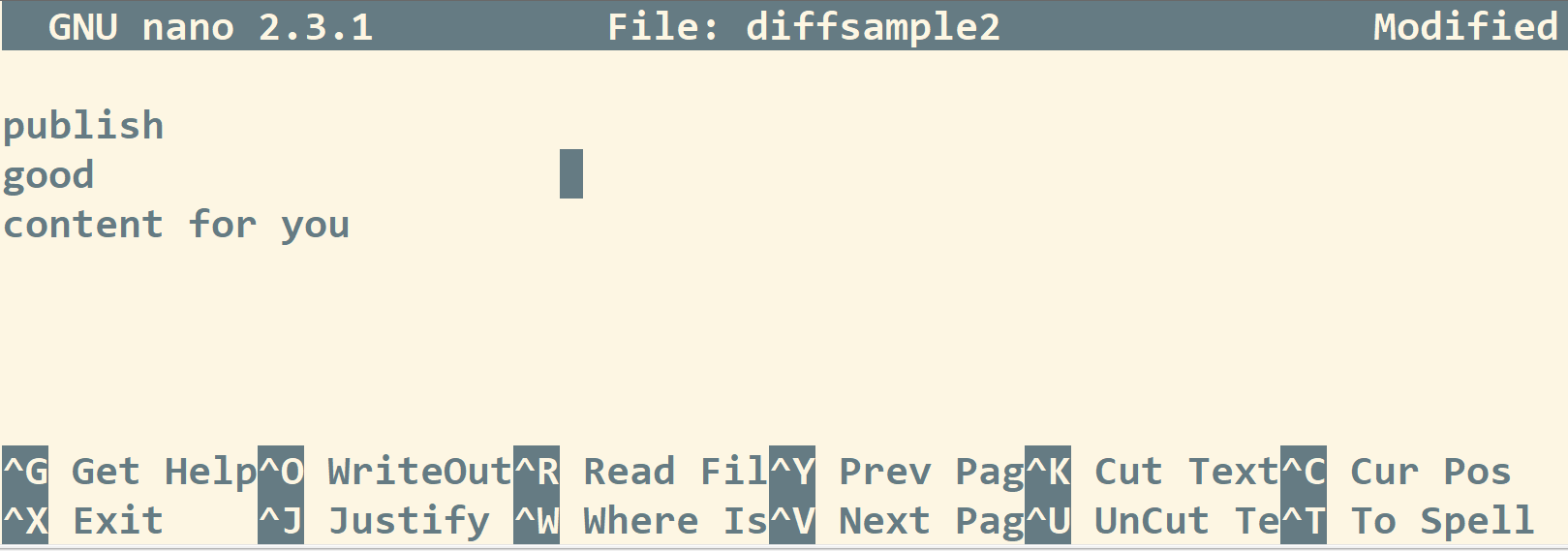 在开始前,我们先用文件编辑器创建两个内容相同的文件。这里我们使用的是 nano 。