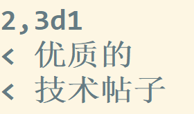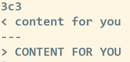 在以上输出信息中,3c3 表示第一个文件的第三行需要被替换为第二个文件的第三行,然后为我们提示出了需要修改的内容: 技术文章 和 技术帖子
