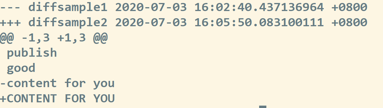 输出信息中使用 - 和 + 表示哪些内容需要被删除或者添加来使得文件内容相同。