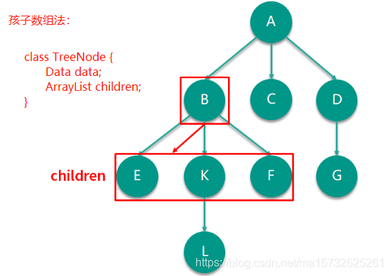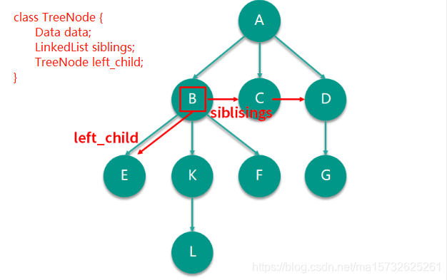 基于链表:每个节点类型维护一个子节点指针和指向兄弟节点的链表