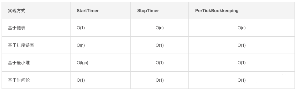 从上面的介绍来看,时间轮的时间复杂度最小、性能最好。