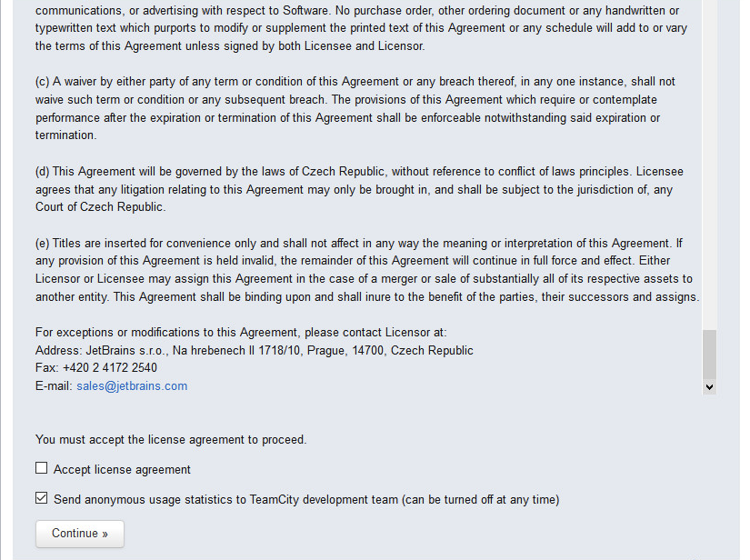 访问(TeamCity 默认端口是:8111):http://ip:8111/ (访问不了就关闭防火墙或者自己配置nginx)