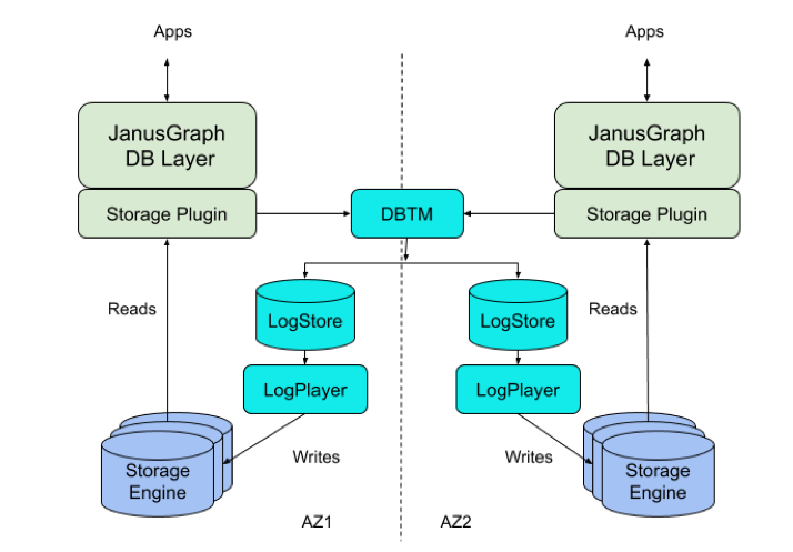 - 存储引擎:后端存储引擎,用于存储JanusGraph中的KCV(键-列-值)数据。它执行读取和变异,并支持LSN定义的快照。