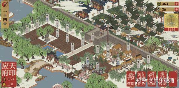 影响民居上限的参数,在游戏中被称为“繁荣度”,可以通过栽树、铺石子路以及建筑花园、高台等景观类设施提升。此外游戏中还有如官府、客栈等特殊建筑,升级解锁后可以开启客栈经营等玩法。