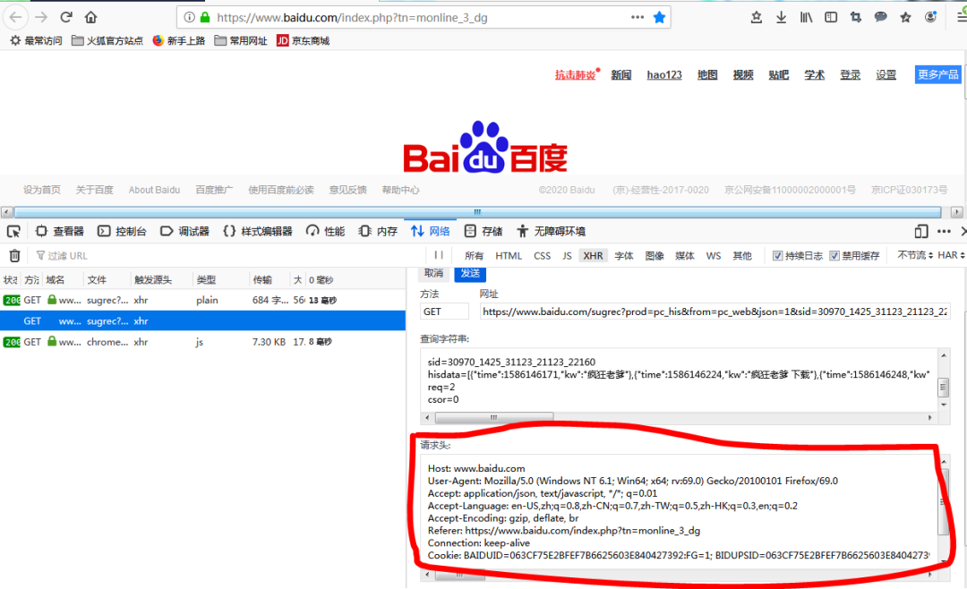 以火狐浏览器为例,右键—查看元素—进入网络界面,然后输入https://www.baidu.com进入百度主页: