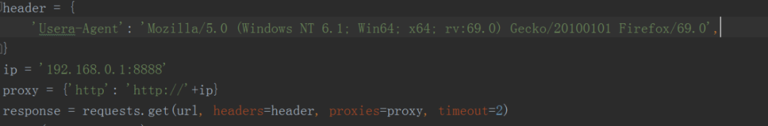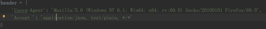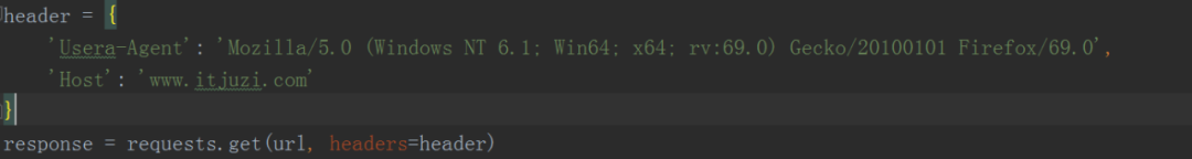 红框内的部分就是该次请求的header头,服务器可以根据header头判断该次请求是由哪种浏览器(User-Agent)发起、访问的目标链接是从哪个网页跳转过来的(Referer)以及服务器地址(Host)。1.加User-Agent值: