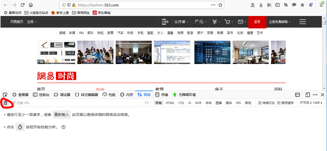我想爬取该网页内的新闻图片,发现它的网页url一直不变,但是下拉网页的时候会一直加载图片,那么我们该怎么办呢?首先按照开头方式打开流量分析工具