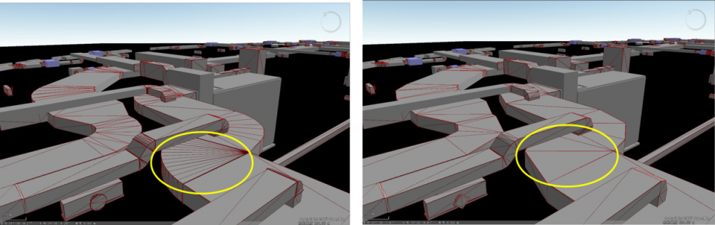 不同细节层级(左为LOD-0,右为LOD-2)的通风风管模型