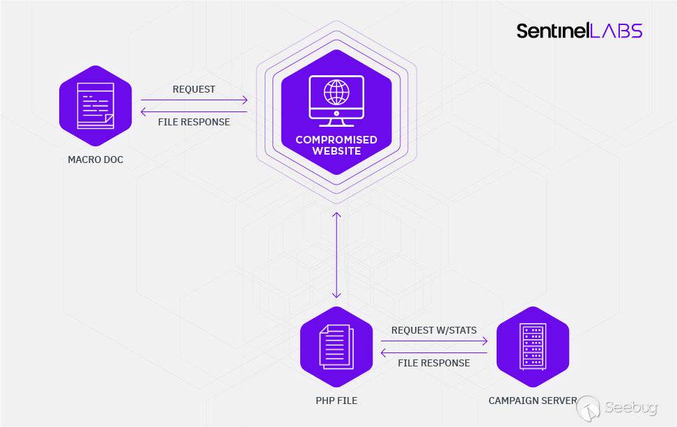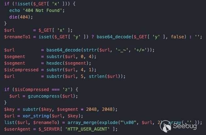 在执行解密后,我们才算真正的下载了URL。使用这个PHP脚本检索的活动文件(如Office文档和 DLL加载器),不会直接存储在PHP文件中,而是存储在预先生成的活动UPL传递给代理脚本的结果中,以便在执行时检索到它们.