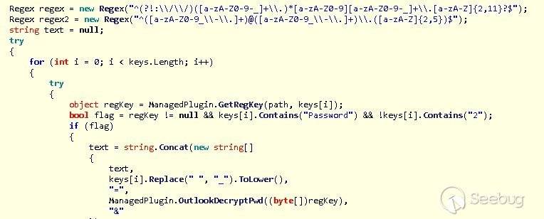 最近关注点已转移到电子邮件盗窃和企业目标定位上,这很有趣。在进行这项研究时,我们还发现了一个名为“clientgrabber”的新插件,该插件主要用于从注册表中窃取电子邮件凭据。