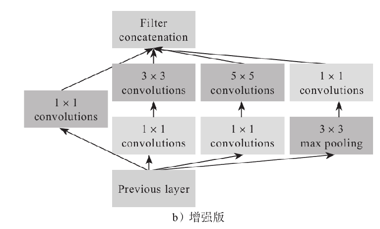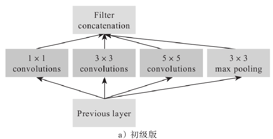 受到NIN的启发,Google的研究小组提出了Inception模块——一种高效表达特征的稀疏性结构,主要是增加对尺度的适应性,达到提升特征表达能力的效果。Inception的结构如图所示。