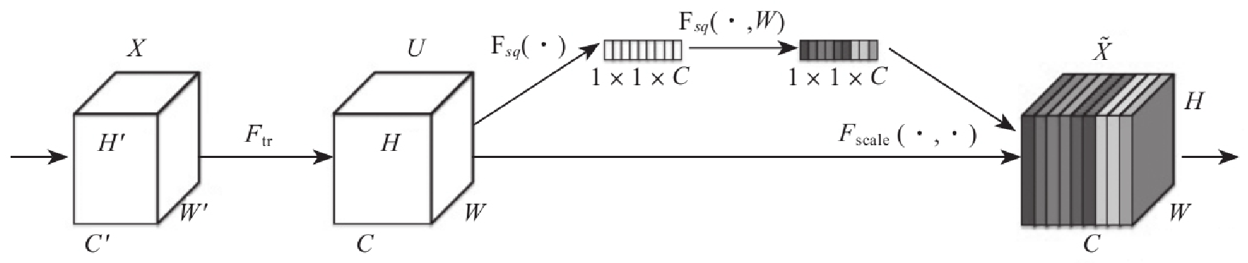 对于每个输出通道,先执行系列的卷积Pooling操作Ftr之后,得到C×H×W大小的特征图。接下来,执行Squeeze和Excitation操作。