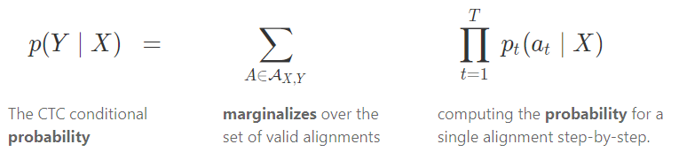 The CTC algorithm, for a given X X X it gives us an output distribution over all possible Y ′ s Y's Y′s, we can use this distribution either to infer a likely output or to assess the probability of a given output.