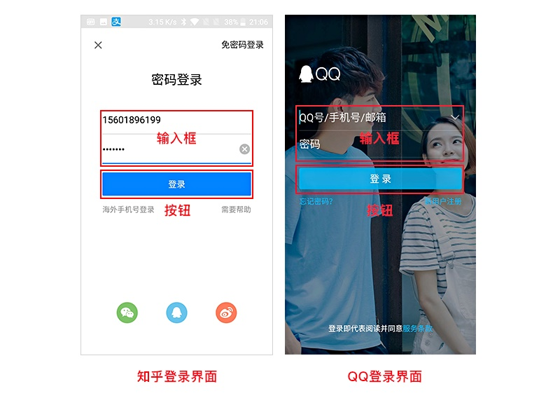案例一:比如登录界面的输入框与按钮