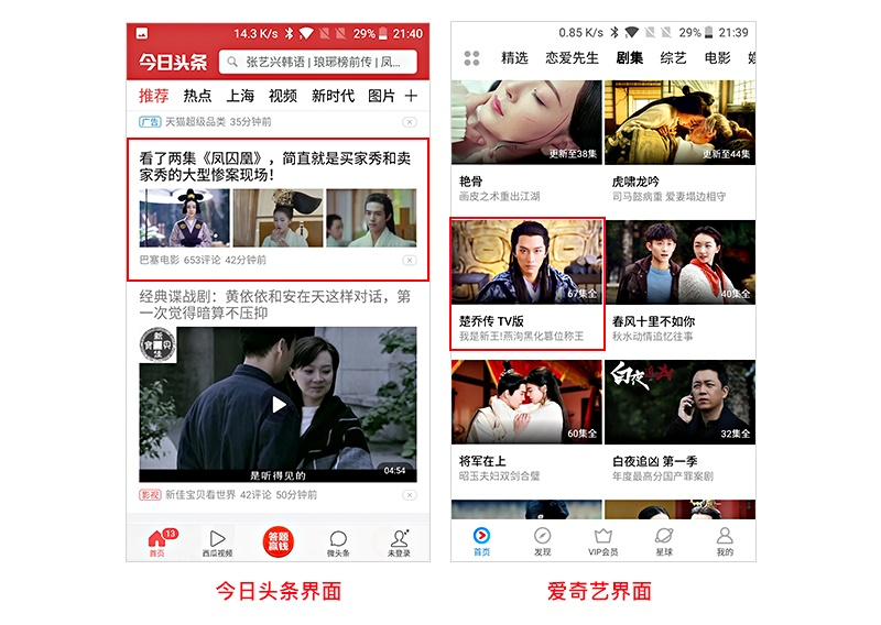 案例二:比如今日头条及爱奇艺视频信息布局