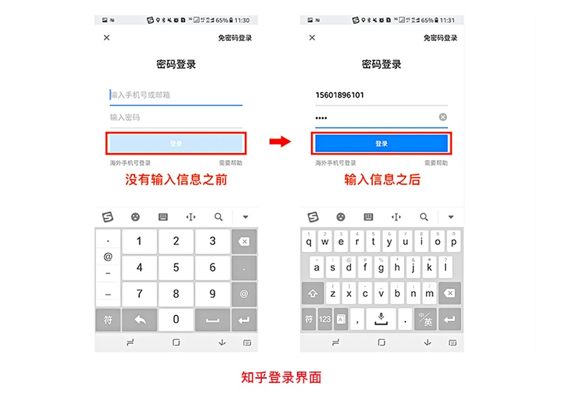 案例一:比如知乎安卓版本的登录操作