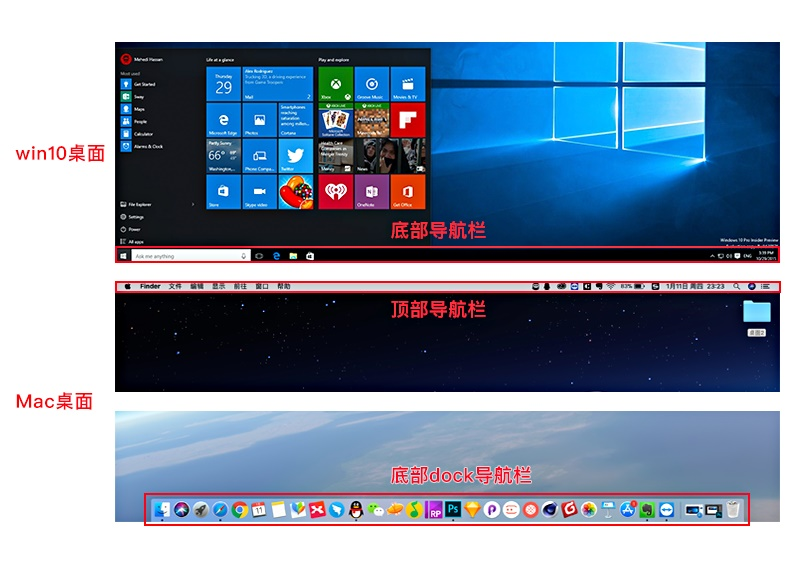 案例二:例如Windows桌面底部导航和Mac桌面顶/底部导航栏