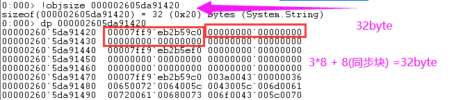 sizeof(000002605da91420) = 32 (0x20) bytes (System.String)