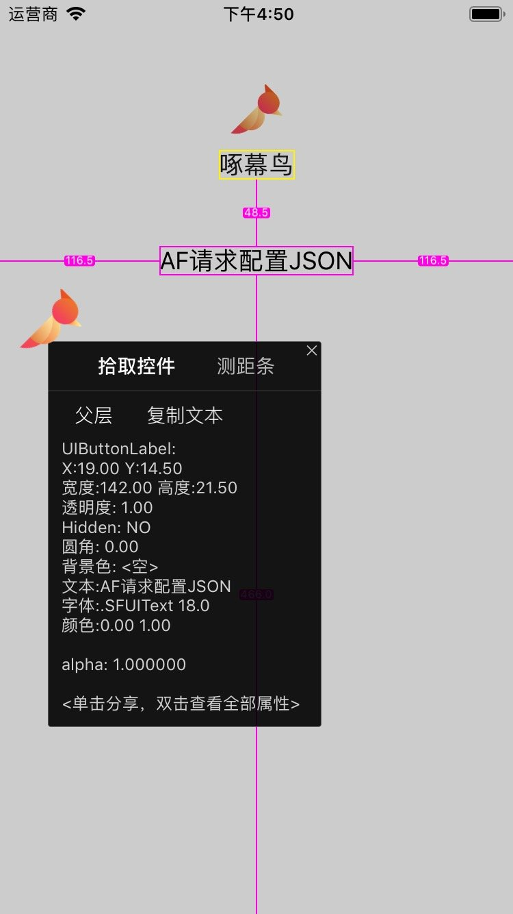 1.UI检查:快速查看页面布局、UI控件间距、字体颜色、UI控件类名、对象属性/成员变量、图片URL等。