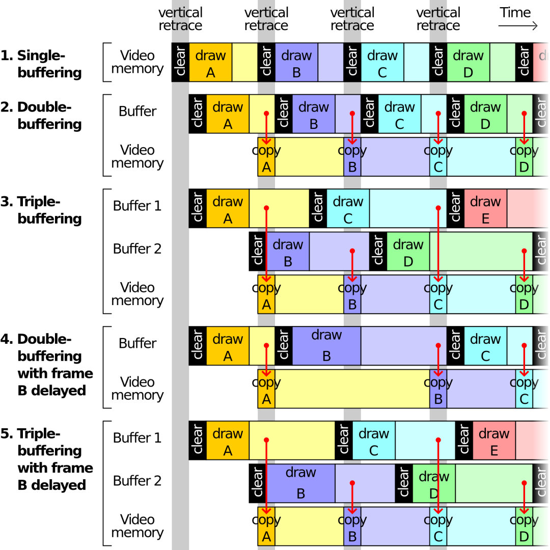 请查看资料,需要梯子:Multiple buffering https://en.m.wikipedia.org/wiki/Multiple_buffering