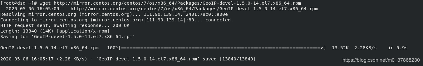 wget http://mirror.centos.org/centos/7/os/x86_64/Packages/GeoIP-devel-1.5.0-14.el7.x86_64.rpm # 下载GeoIP-devel二进制包