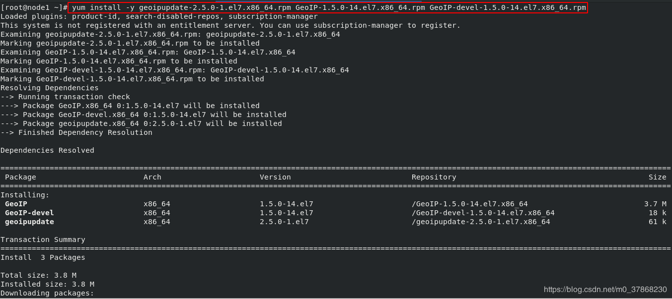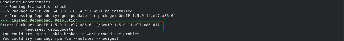 yum install -y geoipupdate-2.5.0-1.el7.x86_64.rpm GeoIP-1.5.0-14.el7.x86_64.rpm GeoIP-devel-1.5.0-14.el7.x86_64.rpm