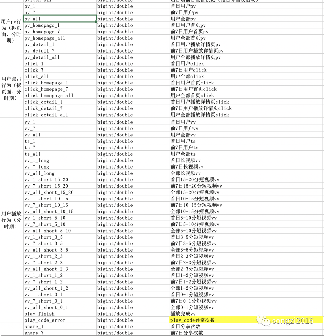 随着自己对业务的分析与拆解,然后可以加入更多的基础变量来参与到模型研究中。关于用户的pv行为、用户点击行为、用户的播放行为,我会做更详细的分片拆分,这样能得到更多显著特征与更多特征。当然在某个地方可以叫做连续变量的区间化。