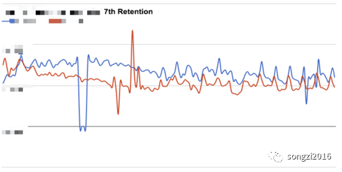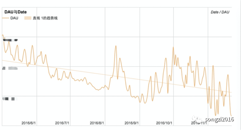 下图中给出的是 2016 年某个第三方应用市场的日 DAU、次日留存、7 日留存的的数据情况, 从数据上明显看出来,这个 Android App 的 DAU 量级在短短几个月中一直抖动着下滑。