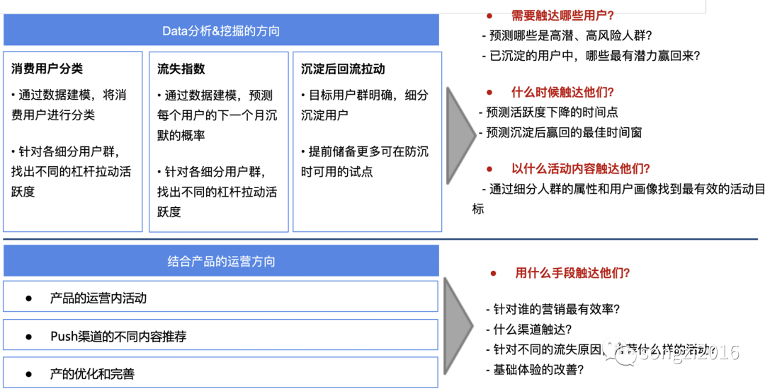 这个文章可以给业务一些参考,也可以给分析师一些分析方向上的参考,同时可以给数据产品经理一个从业务到模型到数据产品的规划参考。按照惯例,里面涉及到的很多案例不做更详细的解释,如果有感兴趣可以私下交流。
