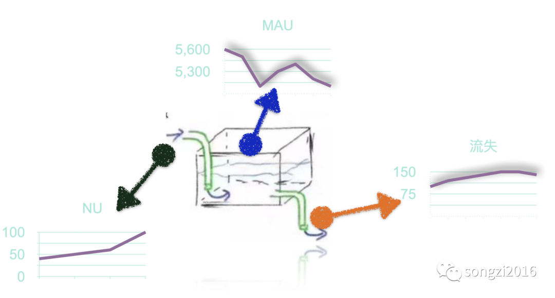 运营的同学在每日面对刚涌进来的、将要离开的、已经离开的这几个类型的用户还是很头痛。一边是通过渠道拼命买量拉来的新用户,一边是保持耿直不变或缓缓下降的DAU曲线。如果把每日 NU 数据曲线叠加到 DAU 上,从这个DAU曲线缓缓下降的趋势来看,每日的 NU 增量或许大几十万,每日不活跃用户也是大几十万或上百万。从数据的表现来看用户的新增与流失相当,一边是花钱买量,一边是留不住用户,如果赶上产品、业务、环境形势问题,更是一个让人心碎的问题。