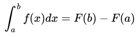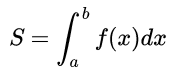 如上图所示,如果一条曲线y=f(x)和x轴在a和b之间围成的面积为S,那么,我们就可以这样表示这部分面积S: