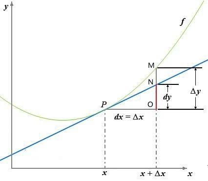 莱布尼茨就给这两个趋近于0却又不等于0的Δx和Δy重新取了一个名字:dx和dy,并把它们称为“微分”。