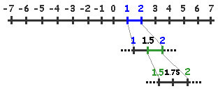 但是这个图景是不对的,为什么?因为实数是稠密的。稠密就是说任意两个点(实数)之间永远都有无数个点(实数)(你自己想想是不是,1和2之间有多少个数?)。你以为它能从A点移动到邻近的下一个B点么?对不起,这个它真做不到!