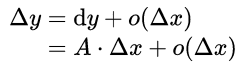 微分的严格定义是这样的:对于Δy是否存在着一个关于Δx为线性的无穷小A·Δx(A为常数),使它与Δy的差是较Δx更高阶的无穷小。也就是说,下面这个式子是否成立: