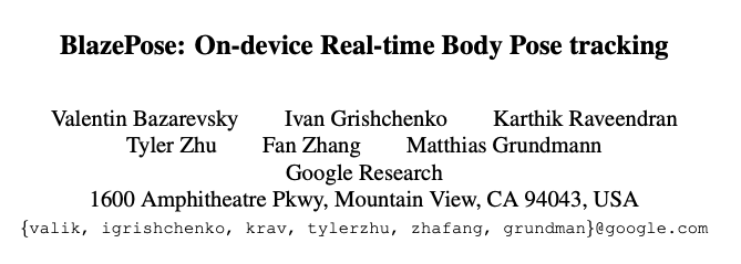 提出了用于边缘设备上运行的单人人体姿态估计算法BlazePose