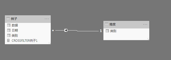 CALCULATE ( COUNTROWS ( '例子' ), CROSSFILTER ( '例子'[类别], '维度'[类别], ONEWAY ) )