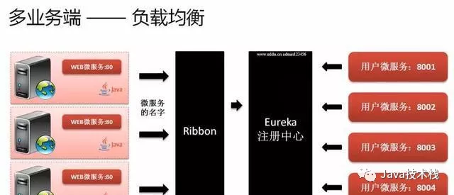 2、对于整个的WEB端的构架(SpringBoot实现)可以轻松方便的进行WEB程序的编写,而后利用Nginx或Apache实现负载均衡处理,但是你WEB端出现了负载均衡,那么业务端呢?应该也提供有多个业务端进行负载均衡。那么这个时候就需要将所有需要参与到负载均衡的业务端在Eureka之中进行注册。