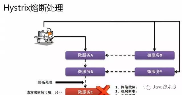 3、在进行整体的微架构设计的时候由于牵扯的问题还是属于RPC,所以必须考虑熔断处理机制,实际上所有的熔断就好比生活之中使用保险丝一样,有了保险丝在一些设备出现了故障之后依然可以保护家庭的电器可以正常使用,如果说现在有若干的微服务,并且这些微服务之间可以相互调用,例如A微服务调用了B微服务,B微服务调用了C微服务。