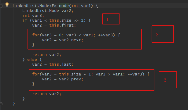 3. 如果是后半段,则从尾部节点开始不停的循环找下去,直到找到符合的下标位置