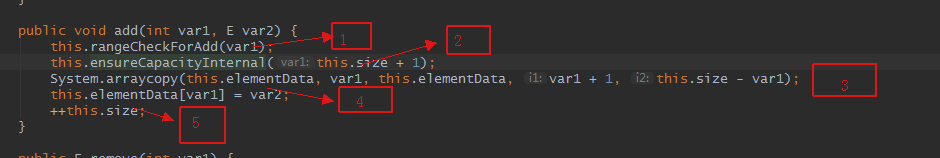 经过System.arraycopy方法后,会得到一个新的数组,而这个数组的var1 下标的元素是空的