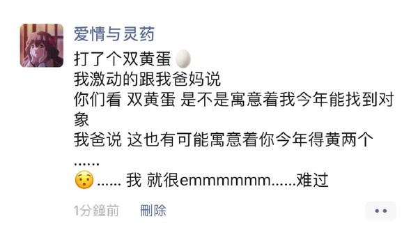 “卧槽 啥 黄2个????打死这个下蛋的鸡算了。”
