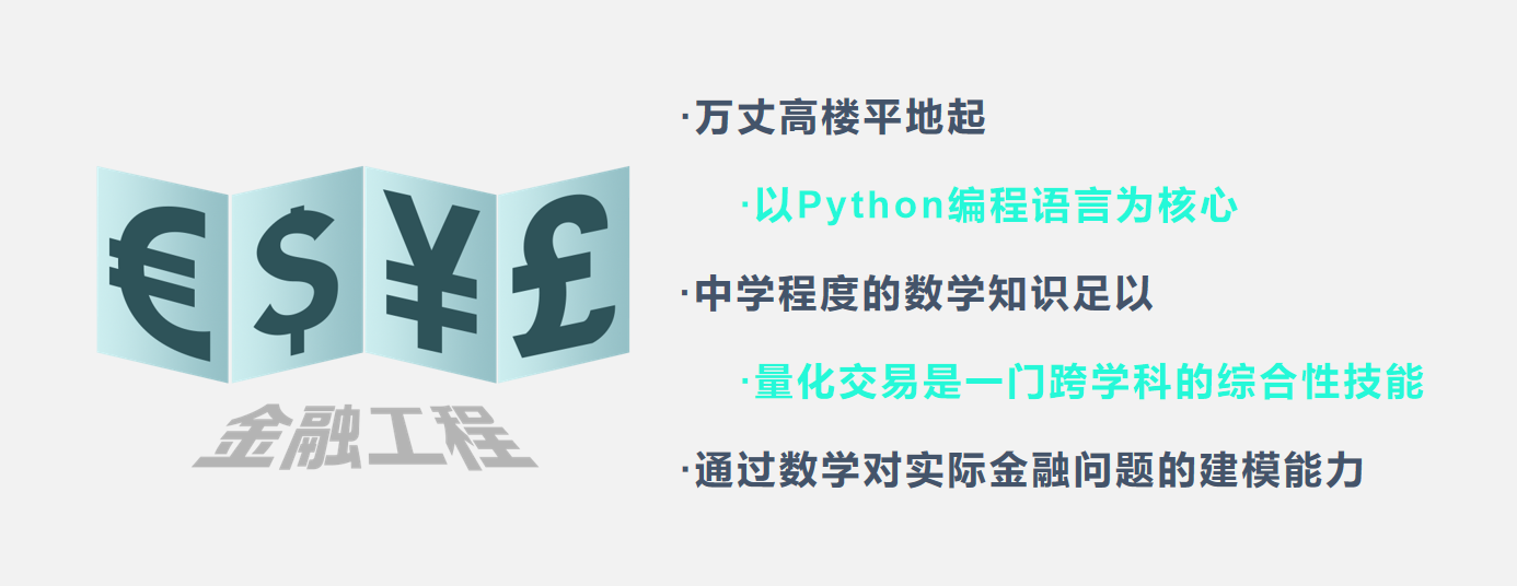 本课程以由浅入深,从易到难的原则,无论你是未接触量化交易的主观交易员,还是没有交易经验的程序员,本课程不仅教如何编程,而且教如何交易,并以编程和交易相结合的方式让学员查漏补缺全面提升。