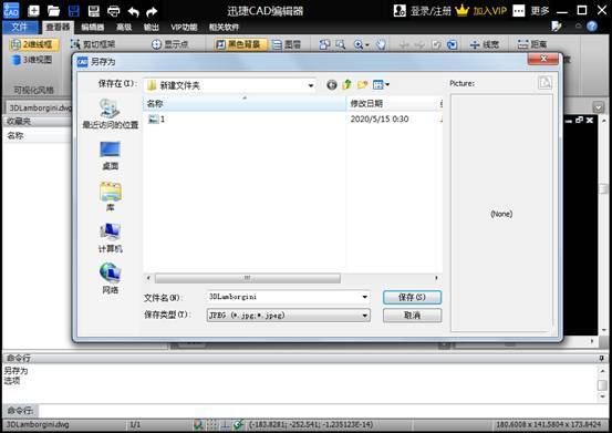 3、把打开的CAD图纸保存为JPG格式很简单,只需要点击上方的保存选项,会弹出新的窗口,窗口中会有两个设置,首先是填写文件名,我们根据自己需要填写,然后是设置保存文件的类型,这时候我们就选择JPG格式,点击“保存”。