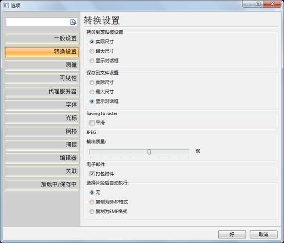 4、如果要设置保存输出文件的质量,我们点击文件选项,选中最下方的选项功能,点击打开弹出编辑窗口,窗口中打开转换设置,设置里可以设置输出质量的相关信息,我们把质量设置为高质量,然后点击“好”,然后在点击另存为JPG格式,点击查看图片保存的文档,图片就转换好了。