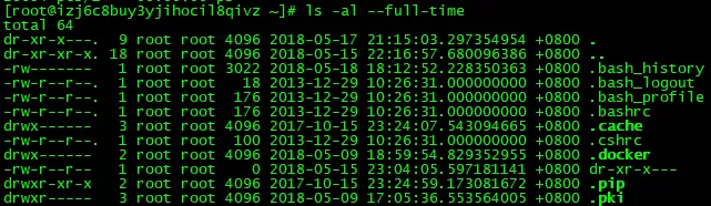 使用命令ls -al --full-time,或者此命令的简写ll可以查看文件或者目录的所有属性。如下: