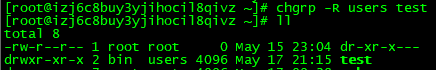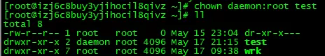 chown daemon:root test 变更文件夹test群组为root。