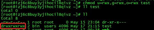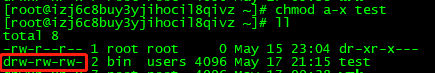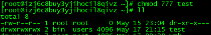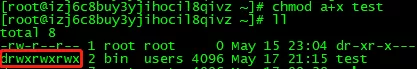 变更目录test的权限为任何人都可读、写、执行。