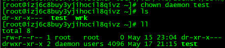chown daemon test 变更文件夹test账号为daemon。