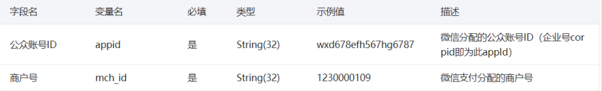 - appid:微信公众账号或开放平台APP的唯一标识